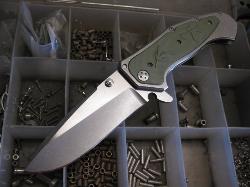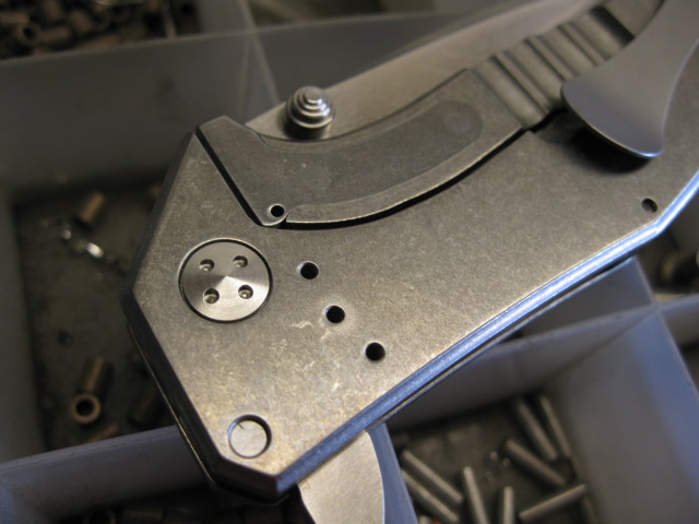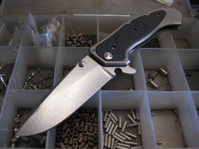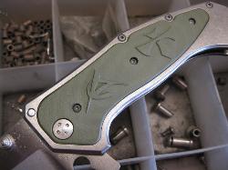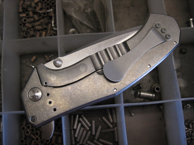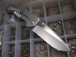 blade material: 154CM 2 tone finished (tumbled & satin) flipper handle material: Tumbled finished titanium frame with G-10 inlays - Stainless steel insert lock bar spacer material: G-10 (color matching the G-10 on the scales) clip material: bead-blasted stainless steel price: $575